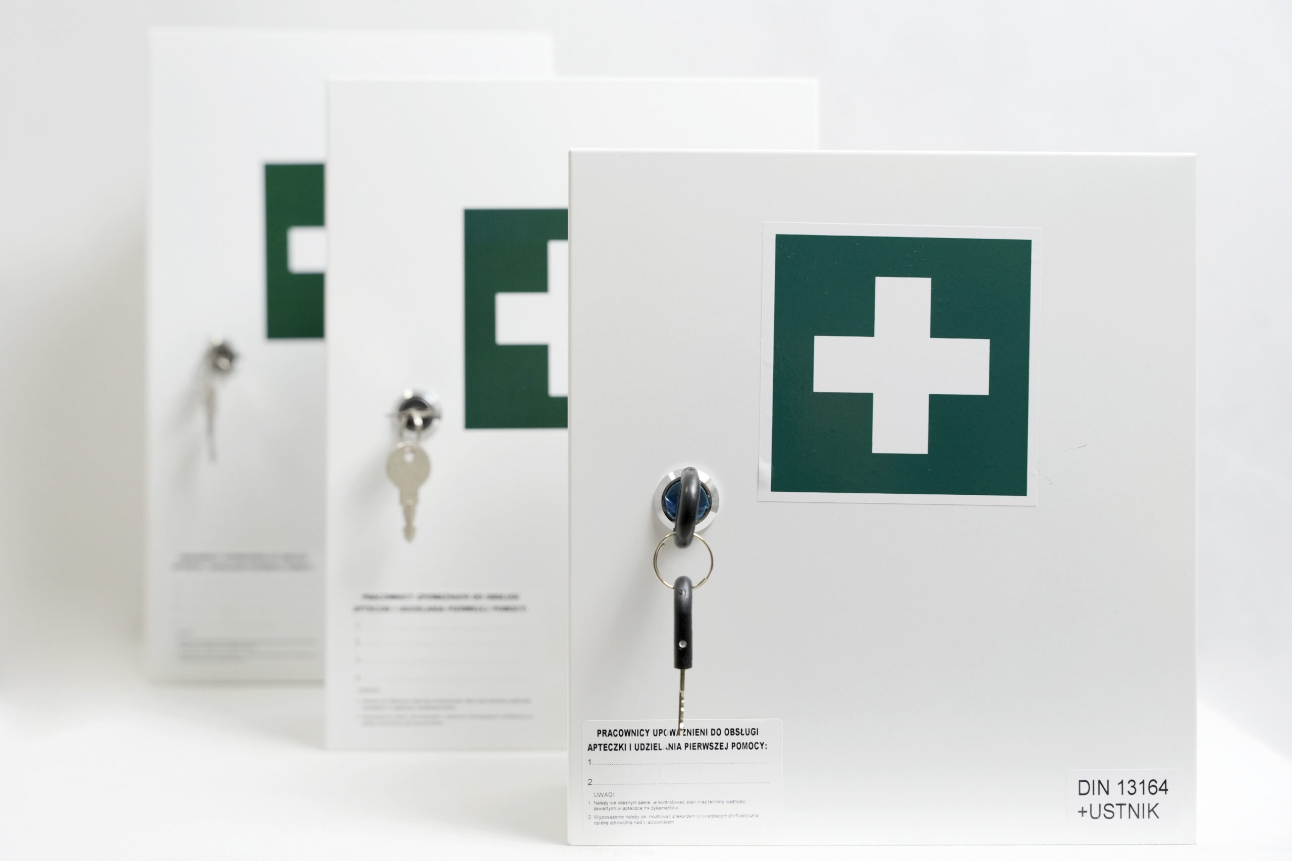 Apteczka ścienna przeznaczona do udzielania pierwszej pomocy w zakładach pracy, biurach, szkołach i obiektach użyteczności publicznej. Wyposażona w podstawowe środki opatrunkowe i ratunkowe, umożliwia szybkie reagowanie w sytuacjach nagłych. Dostępna w trzech rozmiarach.